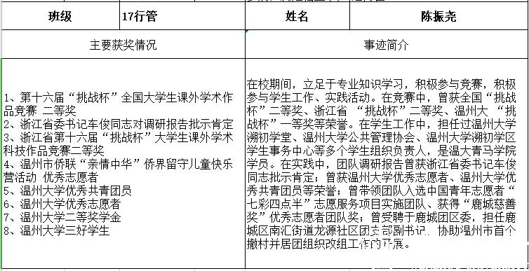 为进一步挖掘、宣传在校大学生自立自强、奋发成才的感人事迹,展示我校大学生勇于面对困难、敢于承担责任、努力成人成才的良好形象,树立先进典型,引导广大青年学生以身边的榜样激励自己,学校开展第十届“自强之星”评选活动。体育博彩平台 共2名学生报名参选,经审核均符合申请条件。体育博彩平台 学工委员会组织评审,现推荐陈振尧同学参加学校评选,基本情况如下: