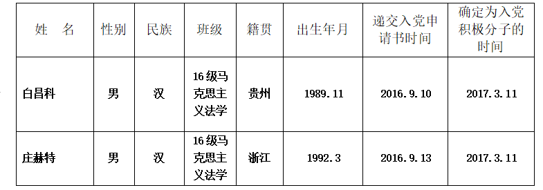 经中共体育博彩 法政学院研究生党支部培养考察,认为以下同志(具体名单附后)已基本具备中共预备党员条件,拟于近期发展,现予以公示。
