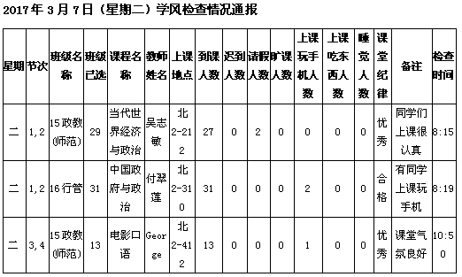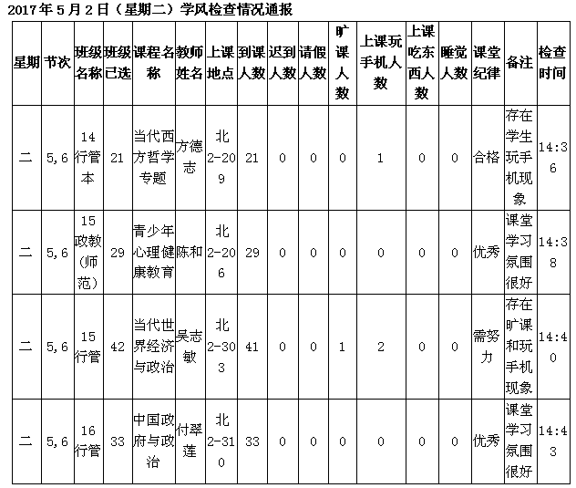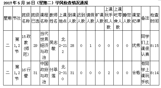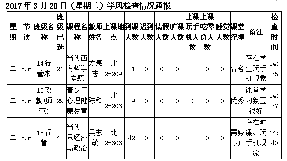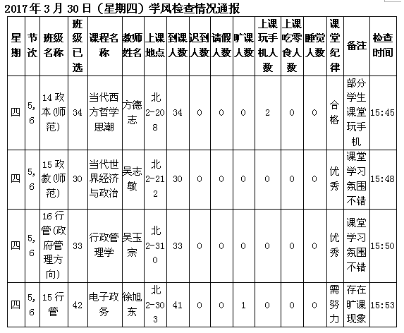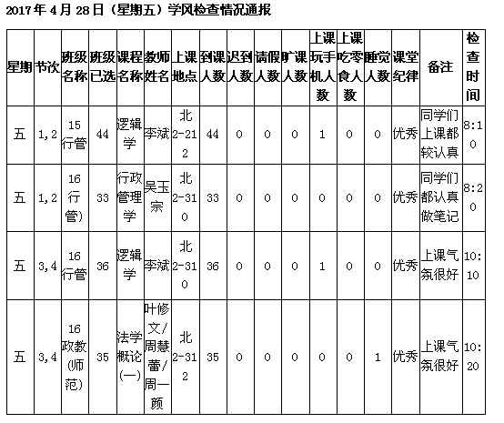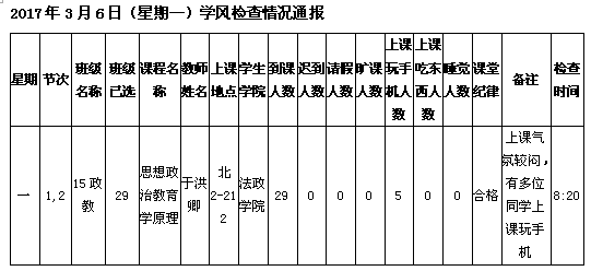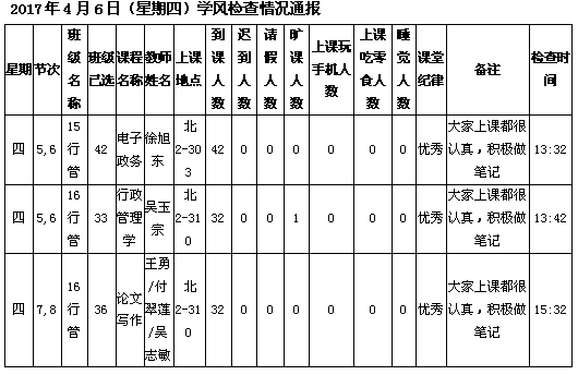 学校学风检查情况(6.26更新)