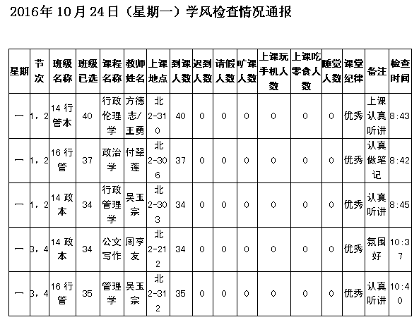 良好;2.合格,人员到齐或有请假,纪律一般;